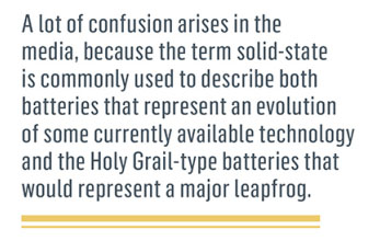 在媒體上產(chǎn)生很多混亂,因為固態(tài)的說法通常用于形容某種當前的可用技術發(fā)展的電池以及在性能上有飛躍提升到理想型電池。