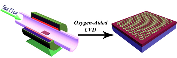 介電層上直接生長多晶石墨烯。他們發(fā)現(xiàn)通過碳氧(C-O)和氫氧(O-H)鍵和作用,可以加強(qiáng)碳?xì)浠衔镌诙趸杌咨系奈剑瑥亩醚趸珊它c(diǎn)實(shí)現(xiàn)了石墨烯在二氧化硅絕緣材料上的直接可控合成(圖2)。制備的石墨烯具有高的光學(xué)、電學(xué)性能,其遷移率在空氣中可以達(dá)到531 cm2/Vs。這一性能遠(yuǎn)高于還原氧化石墨烯,且接近于金屬催化石墨烯的性能,從而開辟了石墨烯的新的研究領(lǐng)域。與目前主流的金屬催化化學(xué)氣相沉積和外延技術(shù)等石墨烯制備方法相比,這種方法與目前的硅工業(yè)兼容,石墨烯不需要轉(zhuǎn)移,可以直接用于器件組裝。因此避免了由于轉(zhuǎn)移造成的石墨烯破損、褶皺、污染以及材料浪費(fèi)等問題。該研究成果發(fā)表在《美國化學(xué)會(huì)會(huì)志》(JACS, 2011,133,17548)上。