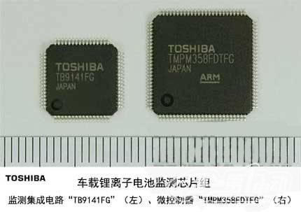該芯片組由監(jiān)控集成電路(IC)“TB9141FG”、設(shè)備控制高密度集成電路(LSI)的微控制器“TMPM358FDTFG”構(gòu)成。1個(gè)監(jiān)控集成電路TB9141FG可監(jiān)控16個(gè)鋰離子電池單元,規(guī)模為業(yè)界最大。通過使用該電路,電池的部件個(gè)數(shù)得以減少,能夠降低系統(tǒng)構(gòu)成的成本。