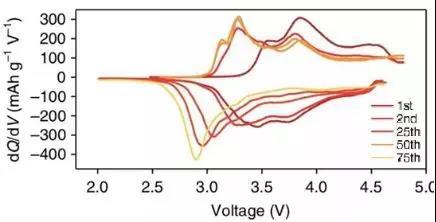 在電化學(xué)反應(yīng)過程中伴隨著氧氣的釋放,會(huì)帶來安全性問題;氧氣釋放和循環(huán)過程中過渡金屬離子平均價(jià)態(tài)持續(xù)降低是導(dǎo)致電壓衰減的根源;這又會(huì)牽涉到我們下一個(gè)要談到的更重要的問題。釋氧問題,從材料的角度而言小編相信是可以得到解決的。