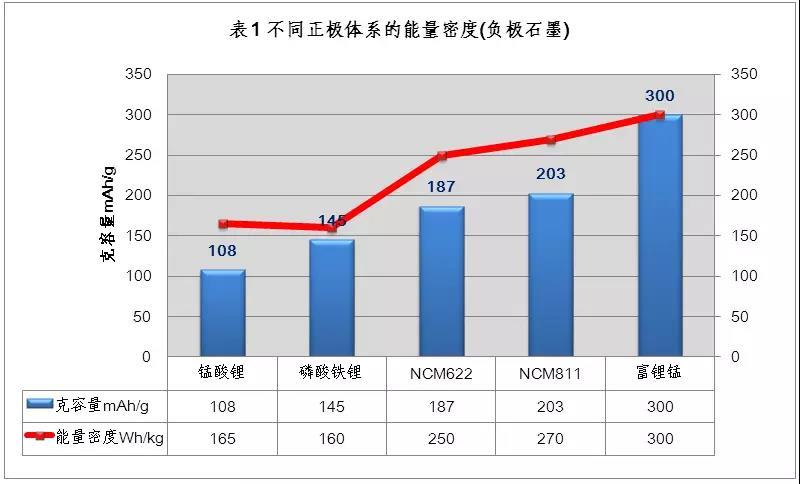 ▲表1 不同正極體系的能量密度(負(fù)極為石墨)