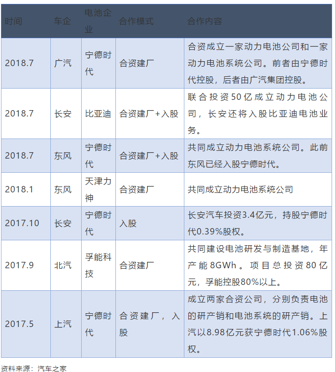 動力電池企業(yè)與整車廠的關(guān)系素來密切,去年以來,二者的深度合作愈加頻繁,旨在合力進(jìn)行技術(shù)提升、降低成本、鎖定市場份額突破口,并有效分擔(dān)補(bǔ)貼退坡帶來的利潤壓力。
