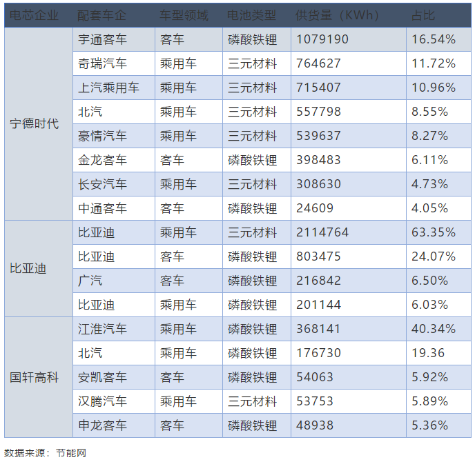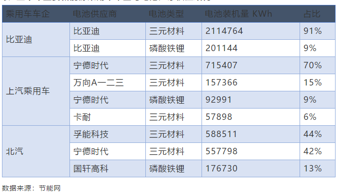 表 3上半年領(lǐng)先電池供應(yīng)商配套車企供貨結(jié)構(gòu)