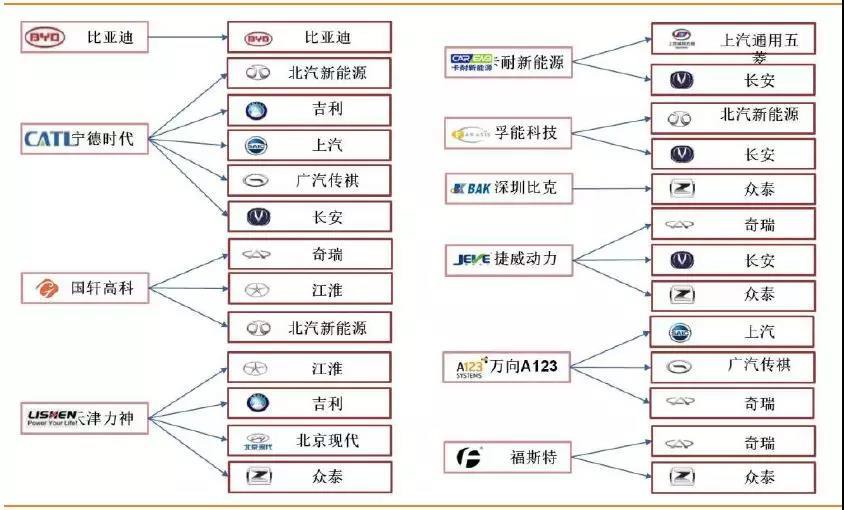 圖11國內(nèi)新能源汽車動力電池供應(yīng)關(guān)系圖
