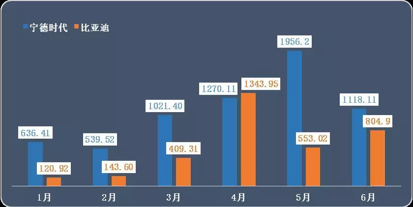 今年以來,寧德時代的月度電池供貨量除了在4月被比亞迪反超之外,其他五個月份一直排在榜首。