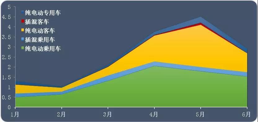 整車出廠合格證數(shù)據(jù)顯示,今年1-6月,國內(nèi)新能源汽車產(chǎn)量依次為39732輛、36920輛、65272輛、86527輛、85874輛、61342輛。6月份乘用車產(chǎn)量54593輛、客車3592輛、專用車3097輛?;诖藴y算,6月國內(nèi)動力鋰電池出貨量2.917GWh,同比去年6月增長35.4%,為年內(nèi)同比增幅最低的月份,環(huán)比5月則減少了34.33%。