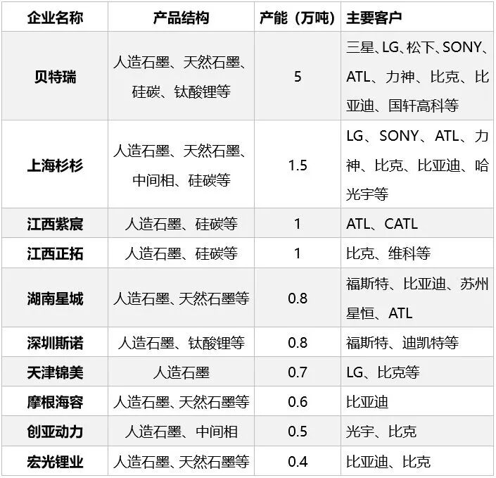 中國(guó)鋰電池負(fù)極材料生產(chǎn)商