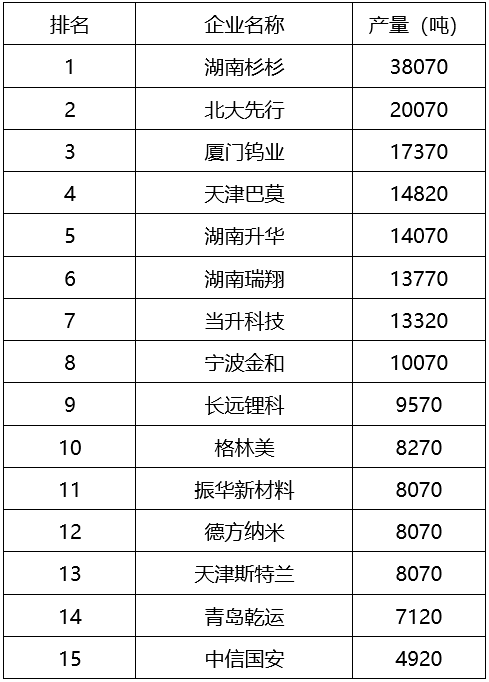 2017年前三季度中國(guó)正極材料企業(yè)產(chǎn)能TOP15