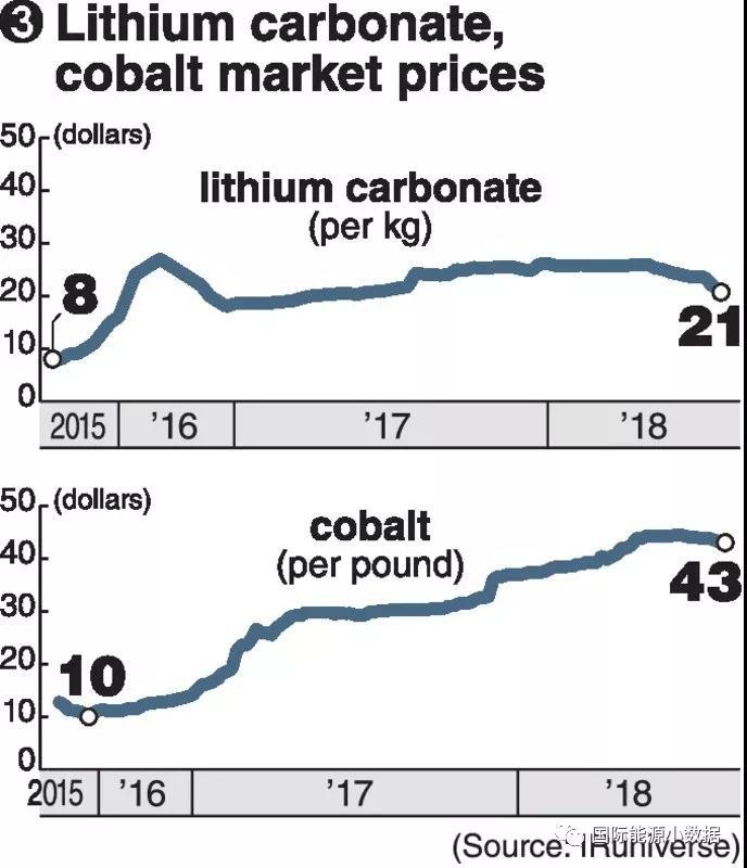 目前碳酸鋰的價格為21美元/公斤,是2005年初(8美元/公斤)的2.63倍;而金屬鈷價格為43美元/磅