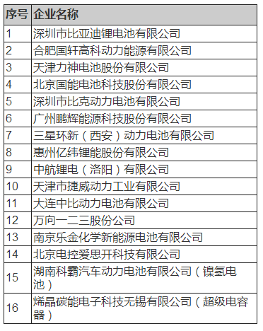 為促使優(yōu)勢(shì)企業(yè)更優(yōu)更強(qiáng)、帶動(dòng)產(chǎn)業(yè)升級(jí),促進(jìn)提高動(dòng)力電池產(chǎn)業(yè)發(fā)展的整體質(zhì)量和水平,按照《汽車動(dòng)力蓄電池和氫燃料電池行業(yè)白名單暫行管理辦法》(《管理辦法》)的要求和推優(yōu)原則,中國(guó)汽車工業(yè)協(xié)會(huì)、中國(guó)汽車動(dòng)力電池產(chǎn)業(yè)創(chuàng)新聯(lián)盟近期組織專家對(duì)材料初審合格的企業(yè)進(jìn)行了專家評(píng)審,根據(jù)專家評(píng)審意見,現(xiàn)將汽車動(dòng)力蓄電池和氫燃料電池行業(yè)白名單(第一批)予以公示。如有異議,請(qǐng)于2018年5月28日前以電子郵件形式反饋至中國(guó)汽車動(dòng)力電池產(chǎn)業(yè)創(chuàng)新聯(lián)盟秘書處。