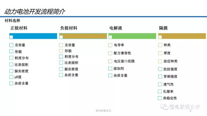每一個(gè)材料的每一個(gè)性能都有相關(guān)的檢測(cè)標(biāo)準(zhǔn),正負(fù)極的某些性能指標(biāo)和電池的性能指標(biāo)直接相關(guān),但目前沒有合適的模型進(jìn)行正向的電化學(xué)性能模擬,只是根據(jù)已有的經(jīng)驗(yàn)數(shù)據(jù)進(jìn)行修補(bǔ)。