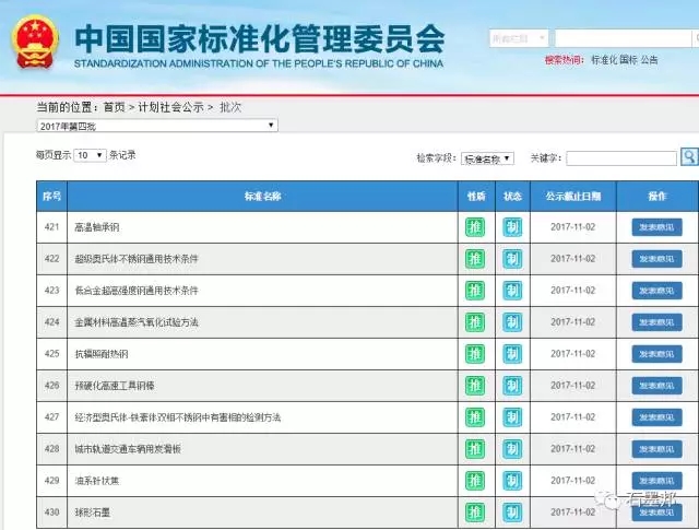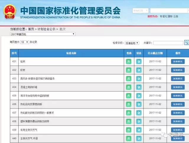 經(jīng)研究,國(guó)家標(biāo)準(zhǔn)委決定對(duì)《城鎮(zhèn)燃?xì)庹{(diào)壓器》等555項(xiàng)擬立項(xiàng)國(guó)家標(biāo)準(zhǔn)項(xiàng)目公開(kāi)征求意見(jiàn),征求意見(jiàn)截止時(shí)間為2017年11月2日。請(qǐng)登錄國(guó)家標(biāo)準(zhǔn)委網(wǎng)站的計(jì)劃公示網(wǎng)頁(yè)http://ballot.sacinfo.org.cn:8080/stdpub/index?bId=881,查詢項(xiàng)目信息和反饋意見(jiàn)建議。