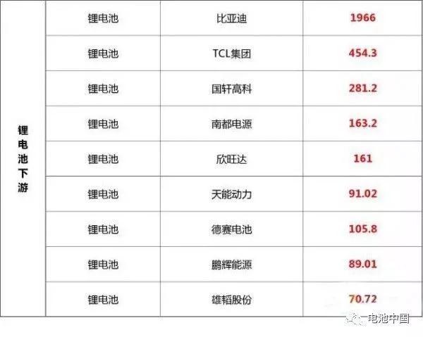 如圖所示,總市值超過(guò)500億的鋰電企業(yè)有4家,其中有3家均為鋰電池上游企業(yè),為天齊鋰業(yè)、贛鋒鋰業(yè)、鹽湖股份,1家為下游企業(yè)比亞迪,市值達(dá)1966億,有兩家鋰電企業(yè)市值有望沖破500億,分別為中信國(guó)安和TCL集團(tuán)。市值超過(guò)100億的企業(yè)有22家,占鋰電企業(yè)的76%,其余企業(yè)有望突破百億。