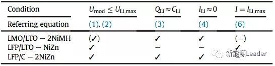 下表是對幾種電池與NiZN、NiMH電池并聯(lián)時的效果的總結(jié),從第一列可以看到幾種并聯(lián)方式都能夠使的電池組的最大電壓小于鋰離子電池的最大限制電壓,避免鋰離子電池發(fā)生過充。從第二列可以看到,除了LFP/LTO-NiZn電池不能充分利用鋰離子電池容量外,其他的兩種并聯(lián)方式都能夠充分的利用鋰離子電池的容量,因此也能夠?qū)崿F(xiàn)對電池組的均衡(第三列)。從第四列可以看到,受到并聯(lián)的NiZn、NiMH電池的影響,電池組的最大放電電流要小于鋰離子電池的最大電流,因此在實際使用中需要選用高功率型的NiZn、NiMH電池,以保證電池組的性能不降低。