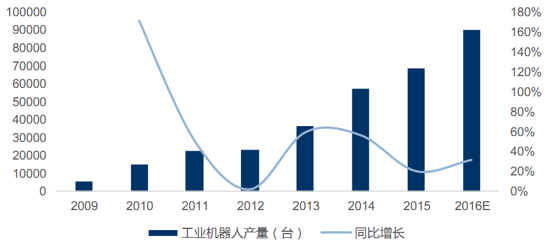 出于提高鋰離子電池一致性、提升產(chǎn)品合格率、降低勞動(dòng)力成本的需要,自動(dòng)化成為鋰離子電池制造行業(yè)重要發(fā)展方向。在“智能制造”、“工業(yè)4.0”的大背景下,鋰離子電池傳統(tǒng)的手工制造工藝難以滿足鋰離子電池市場(chǎng)日益嚴(yán)苛的需求,取而代之的將是全智能自動(dòng)化生產(chǎn)線。根據(jù)國(guó)際機(jī)器人聯(lián)合會(huì)(IFR)的報(bào)告,我國(guó)工業(yè)機(jī)器人產(chǎn)量不斷增加,2009-2016的年復(fù)合增長(zhǎng)率高達(dá)49%,標(biāo)志著我國(guó)自動(dòng)化水平穩(wěn)步提升。機(jī)器人自動(dòng)化企業(yè)也在不斷拓展對(duì)鋰離子電池制造行業(yè)的布局,已有不少公司在生產(chǎn)線上使用機(jī)器人。時(shí)代高科的董事長(zhǎng)田漢溶表示:“機(jī)器人在鋰電設(shè)備行業(yè)的應(yīng)用才剛剛開(kāi)始”。