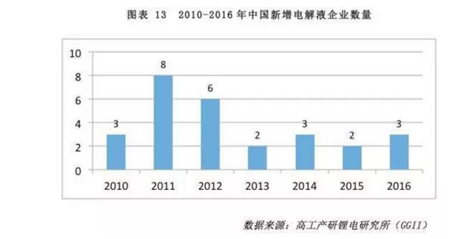 值得注意的是,近兩年電解液的新增企業(yè)相對于動力電池新進企業(yè)而言少之又少。