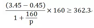 1g磷酸鐵鋰與Si負(fù)極匹配,Si負(fù)極按照0.45V和4200mAh/g計(jì)算,匹配后的全電池比能量為(3.45-0.45)V*160mAh/1.038g=462mWh/g。明顯的,使用Si負(fù)極替代石墨碳負(fù)極以后,其容量增長(zhǎng)可以彌補(bǔ)因?yàn)槠涿撲囯妷荷邔?dǎo)致的電池電壓下降帶來(lái)的影響。當(dāng)然,這是理論的考慮,因?yàn)镾i負(fù)極實(shí)際容量不可能達(dá)到其理論值。假設(shè)Si負(fù)極實(shí)際容量為p,要滿足全電池比能量大于362.3mWh/g的條件,滿足的關(guān)系式是