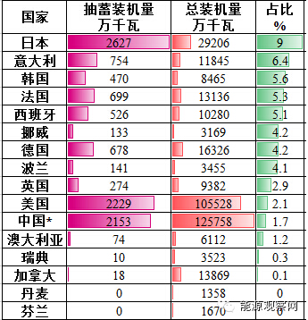 截止2013年我國抽水蓄能電站23座,發(fā)電裝機容量2153萬千瓦,約占水電裝機比重的8%,不到全國發(fā)電裝機總量的2%。這個比例算不算高呢?來看看國外的抽水蓄能的裝機比例都有多少,以下數據都來自IEA的統(tǒng)計。