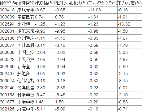 中國儲能網(wǎng)訊:近三日上證指數(shù)下跌0.02%,A股成交金額較前三日下降24.08%,主力資金凈流出最多的概念為鋰電池,該概念所屬個股共有106只,其中主力資金凈流出前列的個股是東旭光電、中信國安、比亞迪,分別凈流出11.08億元、1.31億元、1.23億元;凈流入最多的個股為東方精工、超華科技、天齊鋰業(yè),分別凈流入0.34億元、0.33億元、0.32億元。