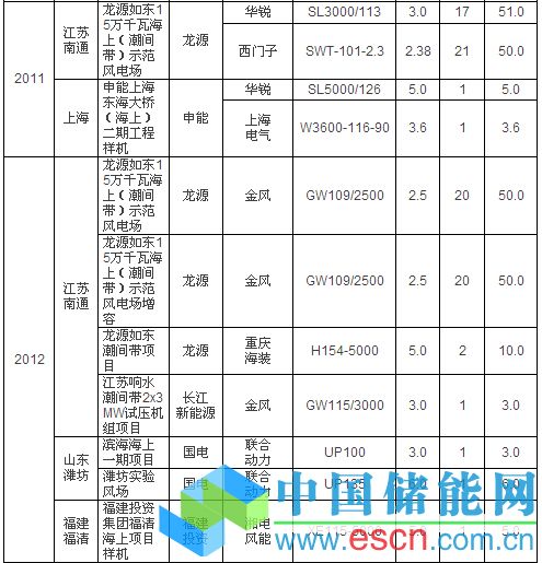 表2:2013年中國海上風(fēng)電機組安裝情況