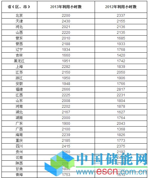 全國各省(區(qū)、市)2012和2013年的平均風(fēng)電等效滿負(fù)荷小時數(shù)如下: