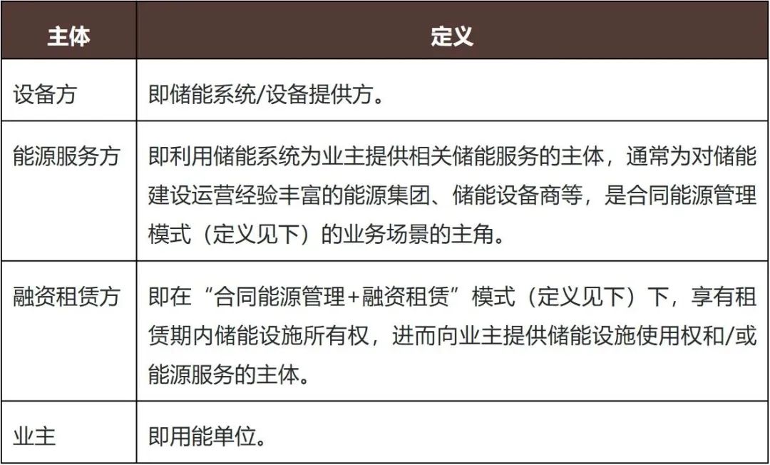 如上文所介紹,工商業(yè)儲(chǔ)能的核心即在于利用儲(chǔ)能設(shè)施與儲(chǔ)能服務(wù),通過(guò)峰谷套利等方式,獲得儲(chǔ)能收益。而圍繞該等鏈條,主要參與主體包括設(shè)備方、能源服務(wù)方、融資租賃方以及業(yè)主: