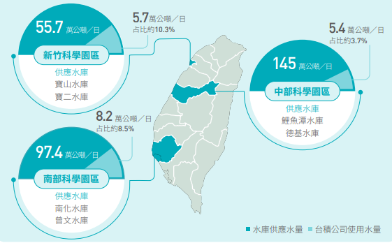 臺(tái)積電大量消耗的除了電,還有水——需要用超純水來(lái)對(duì)芯片進(jìn)行清洗。根據(jù)臺(tái)積電《109年度企業(yè)社會(huì)責(zé)任報(bào)告》,新竹、中部、南部三個(gè)廠區(qū)每日用水量分別為5.7萬(wàn)噸、5.4萬(wàn)噸和8.2萬(wàn)噸。盡管臺(tái)積電已實(shí)現(xiàn)86%的廢水回收利用率,平均每升水可重復(fù)利用3-4次,但仍然消耗巨大。2020年臺(tái)積電消耗了約7000萬(wàn)噸水,2021年臺(tái)灣又遭遇了半個(gè)世紀(jì)以來(lái)最嚴(yán)重的干旱,臺(tái)積電的用水問(wèn)題成為了一個(gè)有爭(zhēng)議的話題——芯片制造商與農(nóng)民爭(zhēng)奪水資源(為了保住“用水大戶”半導(dǎo)體產(chǎn)業(yè),臺(tái)灣當(dāng)局采取多種措施,如抽取地下水、休耕停灌大量農(nóng)田等)。