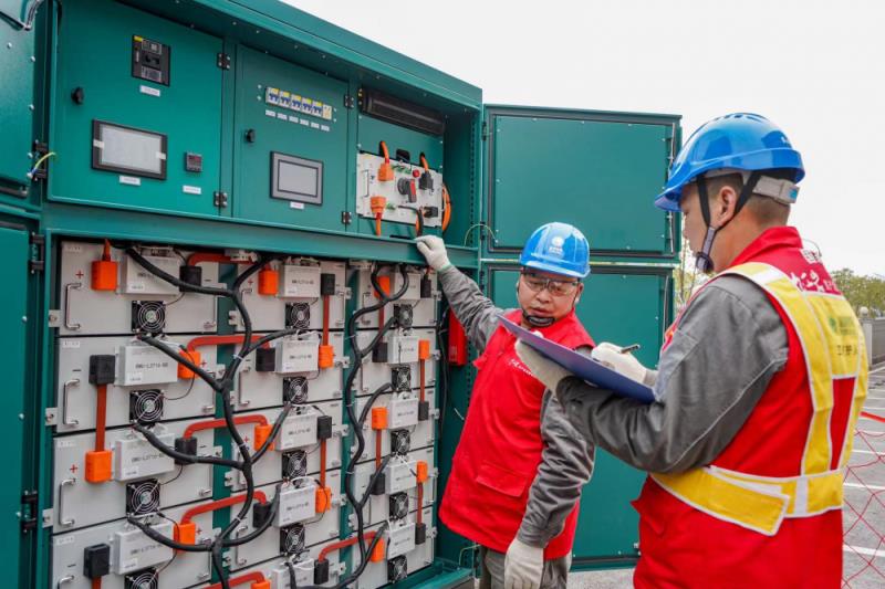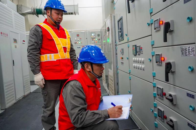 ▲工人校對(duì)儲(chǔ)能設(shè)備電力參數(shù)