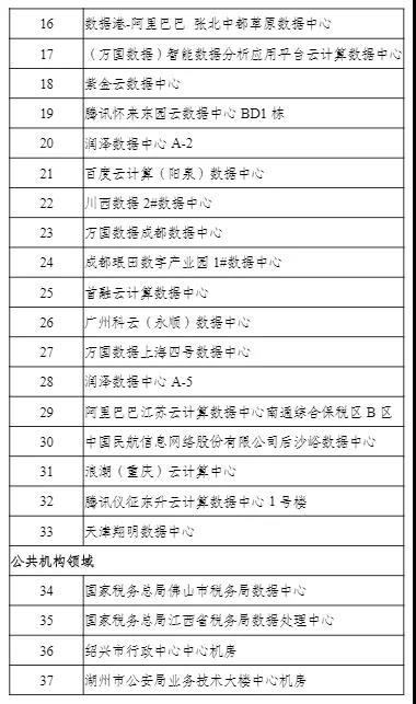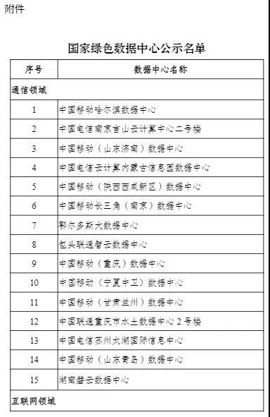 附件:國家綠色數(shù)據(jù)中心公示名單