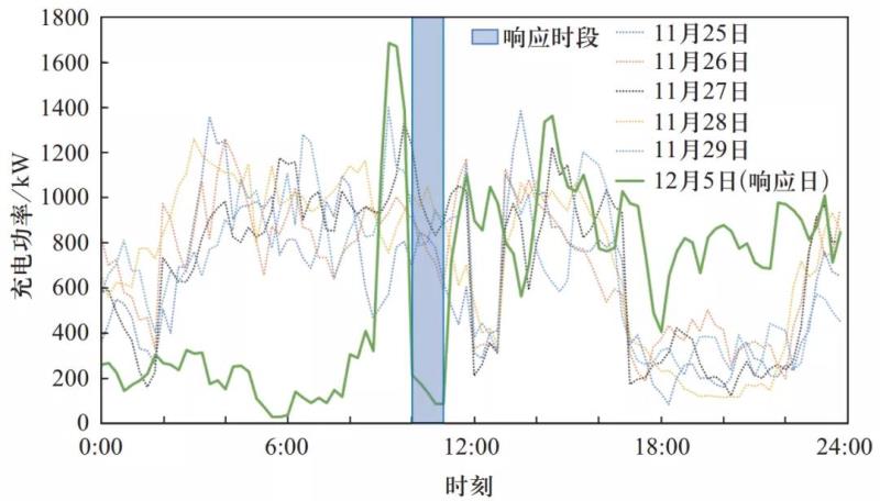 ? 圖1 專用充電樁削峰響應(yīng)與平日充電負(fù)荷對比
