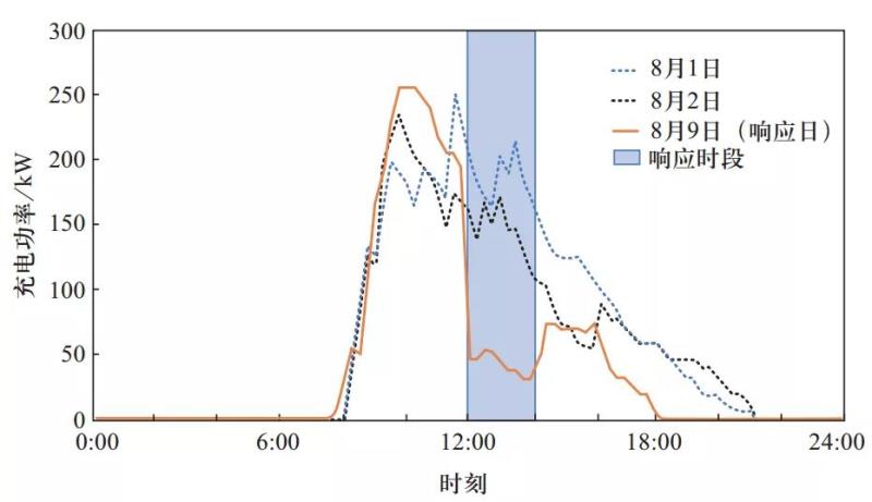 響應(yīng)時(shí)段(12: 00—14: 00)平均充電功率相比平日該時(shí)段平均充電功下降75%,需求響應(yīng)參與度明顯高于私人充電樁。