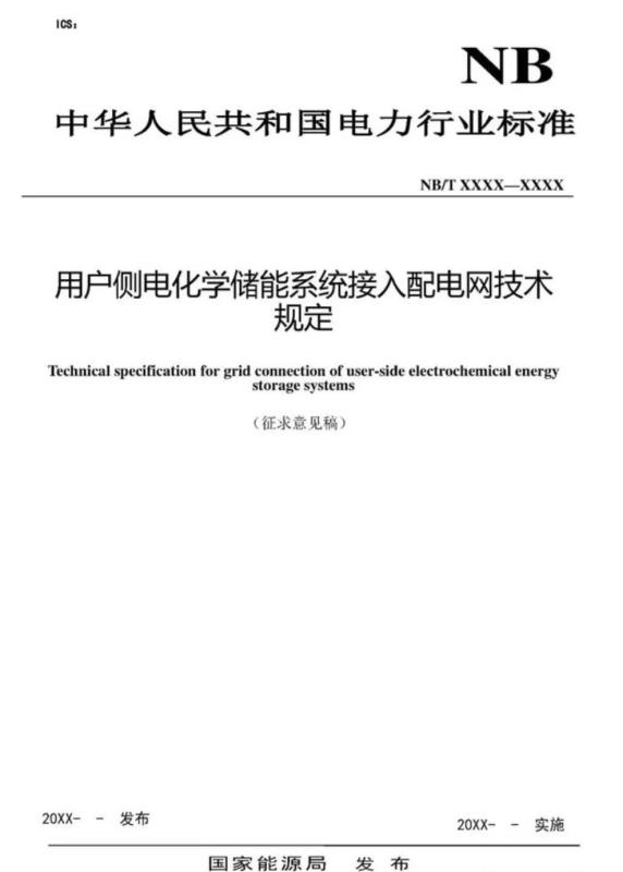 今年7月,中電聯(lián)發(fā)布關(guān)于征求能源行業(yè)標準《用戶側(cè)電化學(xué)儲能系統(tǒng)接入配電網(wǎng)技術(shù)規(guī)定》意見的函: