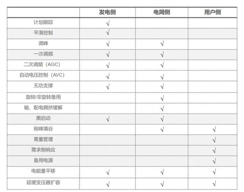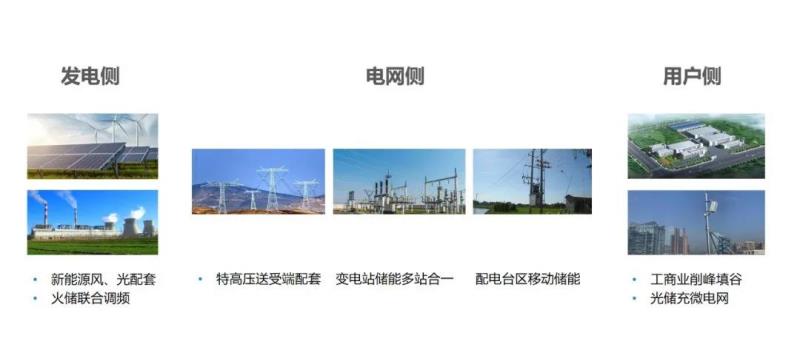 中國儲能網(wǎng)訊:圍繞電力系統(tǒng)的“發(fā)、輸、變、配、用”五大環(huán)節(jié),儲能的應(yīng)用場景主要分為發(fā)電側(cè)、電網(wǎng)側(cè)、用戶側(cè)。在發(fā)電側(cè),主要是聯(lián)合傳統(tǒng)火電機組參與AGC輔助服務(wù)、與新能源風(fēng)光配套平抑波動提高風(fēng)光利用率;在電網(wǎng)側(cè),主要是與特高壓送受端配套緊急功率支撐、變電站儲能調(diào)峰調(diào)頻、配電臺區(qū)儲能緩解重過載;在用戶側(cè),主要是工商業(yè)用戶削峰填谷、光儲充微電網(wǎng)。