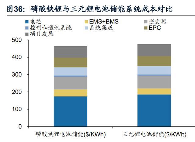 海外磷酸鐵鋰電池應(yīng)用于儲(chǔ)能領(lǐng)域的成本優(yōu)勢(shì)尚未凸顯。從海外儲(chǔ)能系統(tǒng)全產(chǎn) 業(yè)鏈成本構(gòu)成來(lái)看,儲(chǔ)能電池成本占比近 40%,而受制于海外磷酸鐵鋰發(fā)展較晚, 產(chǎn)業(yè)鏈配套相對(duì)滯后,磷酸鐵鋰電池成本優(yōu)勢(shì)尚未凸顯,根據(jù)美國(guó)能源部數(shù)據(jù),2020 年 10MW/40MWh 三元鋰電池儲(chǔ)能系統(tǒng)安裝成本平均 421 美元/KWh,而磷酸鐵鋰 電池儲(chǔ)能系統(tǒng)安裝成本平均 411 美元/KWh,差值較小。國(guó)內(nèi)則受益于新能源汽技 術(shù)進(jìn)步疊加規(guī)模效應(yīng),動(dòng)力電池價(jià)格在過(guò)去五年實(shí)現(xiàn)大幅下降,據(jù)鑫欏鋰電數(shù)據(jù), 2021 年二季度磷酸鐵鋰電池價(jià)格下探至 0.5-0.6 元/Wh,較 2016 年初的 2.6 元/Wh 降幅超 70%,相較于三元鋰電池價(jià)格低 20%以上,應(yīng)用于儲(chǔ)能領(lǐng)域優(yōu)勢(shì)凸顯。