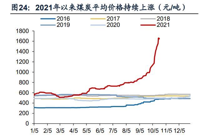 煤價(jià)高企下,“市場(chǎng)煤”與“計(jì)劃電”矛盾推動(dòng)煤電交易全面市場(chǎng)化,價(jià)格機(jī) 制。2021年以來(lái),受煤炭供需偏緊和全球大宗商品價(jià)格上漲影響,華北地區(qū)動(dòng)力煤 價(jià)格由年初550元/噸上漲至十月中旬的1661元/噸,漲幅超200%,而煤電價(jià)格受“基 準(zhǔn)價(jià)+上下浮動(dòng)”限制,火電盈利空間持續(xù)壓縮,煤價(jià)高企下火電廠商出現(xiàn)虧損,發(fā)電意愿持續(xù)受限,火電矛盾愈發(fā)突出。