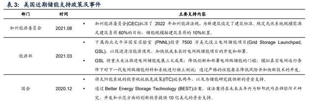 將儲(chǔ)能納入變革性能源技術(shù)予以支持。2021 年 3 月,美國(guó)能源部下屬西北太 平洋國(guó)家實(shí)驗(yàn)室 (PNNL)宣布投資 7500 萬(wàn)美元用于電網(wǎng)側(cè)儲(chǔ)能研發(fā),加快低成本 長(zhǎng)時(shí)電網(wǎng)級(jí)儲(chǔ)能項(xiàng)目的開(kāi)發(fā)和部署,提高電網(wǎng)的可靠性和靈活性以支持新能源汽車 增長(zhǎng)帶來(lái)的終端電氣化趨勢(shì)。同年 1 月,美國(guó)能源部撥款 4700 萬(wàn)美元支持含儲(chǔ)能 在內(nèi)的變革性能源技術(shù),將支持整個(gè)能源領(lǐng)域的高風(fēng)險(xiǎn)和具有潛在顛覆性的新技術(shù), 加速能源創(chuàng)新技術(shù)由實(shí)驗(yàn)室向商業(yè)化轉(zhuǎn)變,包括新能源汽車動(dòng)力電池、數(shù)據(jù)中心儲(chǔ) 能、電網(wǎng)現(xiàn)代化改造、降低碳排放量等關(guān)鍵技術(shù)的進(jìn)一步發(fā)展。