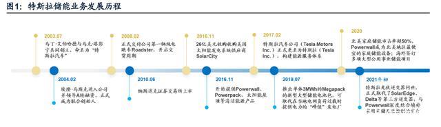 能源業(yè)務(wù)發(fā)展助推特斯拉向可再生能源服務(wù)商轉(zhuǎn)型。特斯拉2003年成立于美國(guó) 硅谷并命名為“特斯拉汽車”;2004年馬斯克進(jìn)入公司并投資630萬(wàn)美元參與A輪融 資,正式成為公司實(shí)際控制人。能源業(yè)務(wù)方面,特斯拉2016年收購(gòu)太陽(yáng)能發(fā)電系統(tǒng) 供應(yīng)商SolarCity正式步入可再生能源發(fā)電行業(yè),垂直整合能源行業(yè)并推出Powerwall、 屋頂光伏等清潔能源產(chǎn)品;2017年更名為“特斯拉”凸顯公司構(gòu)建能源服務(wù)體系、 向可再生能源供應(yīng)商轉(zhuǎn)型信心;2019年推出大型儲(chǔ)能系統(tǒng)Megapack布局全球公用 事業(yè)儲(chǔ)能行業(yè),多個(gè)超大型項(xiàng)目助推儲(chǔ)能高速發(fā)展。公司秉承“加速世界向可持續(xù) 能源轉(zhuǎn)型”的發(fā)展愿景,持續(xù)推動(dòng)清潔能源核心技術(shù)發(fā)展和應(yīng)用場(chǎng)景延拓,著力打 造可持續(xù)發(fā)展的完整能源系統(tǒng)。