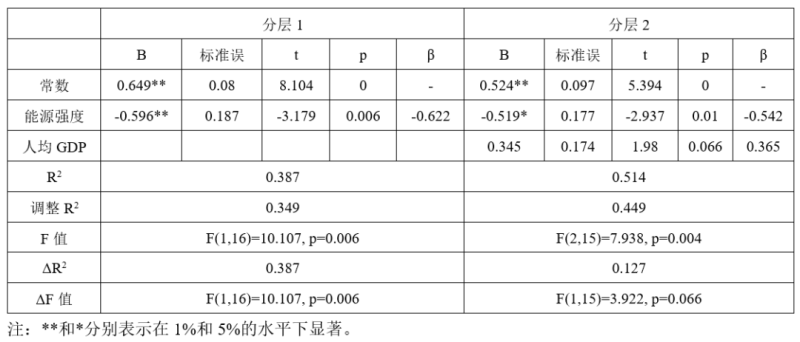 3.2.2 工業(yè)電價(jià)與能源強(qiáng)度、人均GDP的分層回歸分析