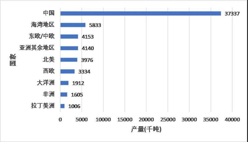 圖11 2020年世界鋁產(chǎn)量,數(shù)據(jù)來(lái)自statista