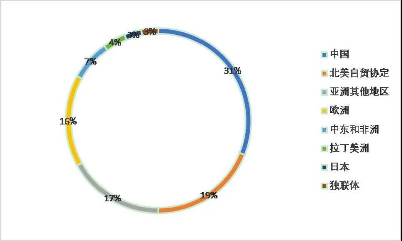 圖9 世界塑料產(chǎn)量占比(按地區(qū)),數(shù)據(jù)來(lái)自statista