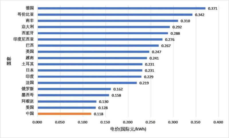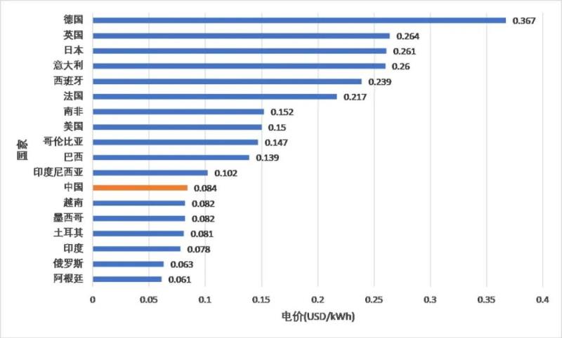 圖4 世界典型國(guó)家居民電價(jià),數(shù)據(jù)來(lái)自statista