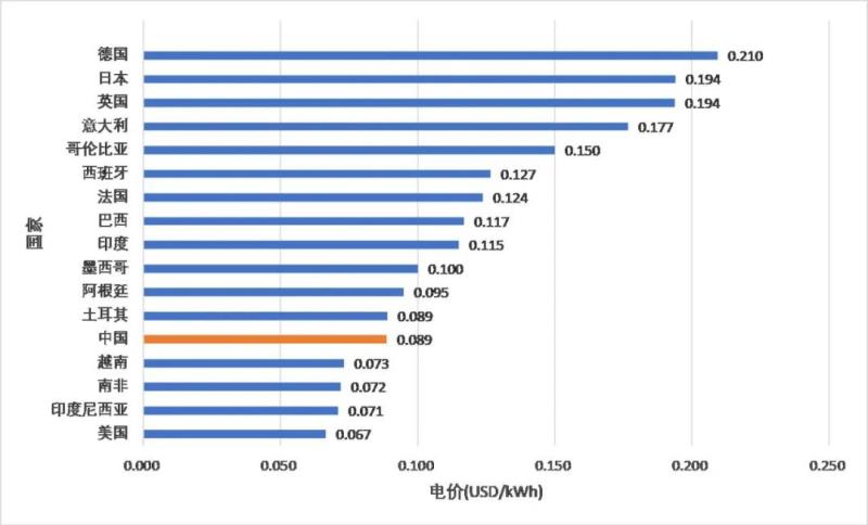 圖5 世界典型國(guó)家工業(yè)電價(jià),數(shù)據(jù)來(lái)自statista