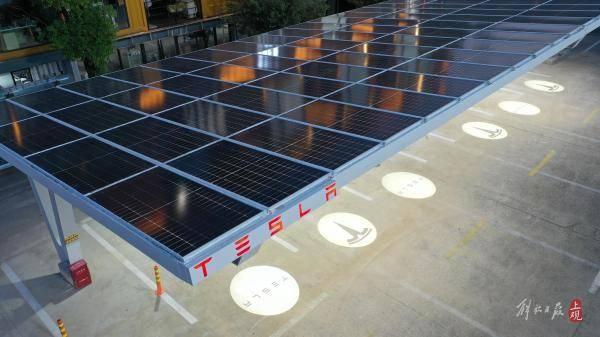 2021年7月17日下午,在上海寶山區(qū)智慧灣科創(chuàng)園內,華東地區(qū)首座特斯拉光儲充一體化超級充電站正式啟用。