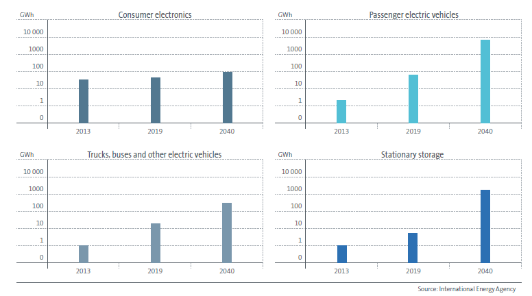 展望2040年,在國際能源署設(shè)定的可持續(xù)發(fā)展場景(SDS)中,電池和其他存儲(chǔ)技術(shù)的部署水平和適用范圍將大幅擴(kuò)大:近1000萬GWh蓄電量將滿足多個(gè)行業(yè)的電力需求。