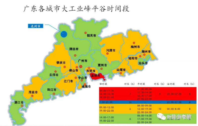 3.廣州地區(qū)的目錄峰谷時(shí)段劃分明顯跟典型夏季負(fù)荷曲線不吻合,2003年,廣東電網(wǎng)由于缺電,為了讓電于民,所以廣東執(zhí)行峰谷電價(jià),為了平衡各地市產(chǎn)業(yè)特點(diǎn),各地峰谷時(shí)段劃分如下: