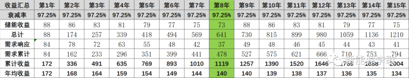 2MW/4MWH的儲(chǔ)能每天響應(yīng)能力為2*4=8MWH,需要削峰月份5-9月份,保守估計(jì)有30天;8*5*30=120萬(wàn)。