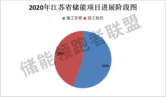 江蘇省已計(jì)入統(tǒng)計(jì)的18個(gè)儲(chǔ)能項(xiàng)目,處于施工安裝階段的儲(chǔ)能項(xiàng)目有10個(gè),約占2020全年儲(chǔ)能項(xiàng)目總量的55.56%;處于竣工驗(yàn)收階段的儲(chǔ)能項(xiàng)目有8個(gè),約占2020全年儲(chǔ)能項(xiàng)目規(guī)??偭康?4.44%。