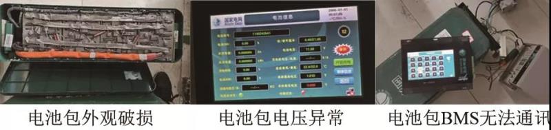 從電池包的外觀、銘牌、開(kāi)路電壓、BMS通訊等方面對(duì)電池包進(jìn)行初選,對(duì)外觀有缺陷、銘牌信息缺失、開(kāi)路電壓超出額定充電截止電壓的80%~110%范圍、BMS無(wú)法正常通訊的電池包予以剔除。經(jīng)檢測(cè),在80個(gè)電池包當(dāng)中存在3個(gè)電池包外觀有破損,4個(gè)電池包開(kāi)路電壓超出額定充電截止電壓的80%~110%,1個(gè)電池包BMS無(wú)法通訊的情況,沒(méi)有通過(guò)初選,剩下72個(gè)電池包進(jìn)入到二次篩選環(huán)節(jié)。電池包初選不合格情況如圖2所示。