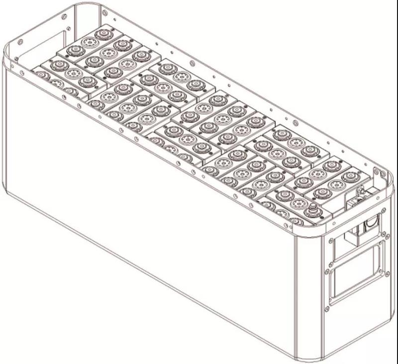 本項(xiàng)目選用從換電站退役的80 V-60 A·h磷酸鐵鋰電池包,這批電池于2011年10月出廠,2018年底陸續(xù)退役。其電芯采用中航鋰電3.2 V-60 A·h方形鋁殼磷酸鐵鋰電池,由24個(gè)電芯串聯(lián)的方式得到電池包。電池包內(nèi)部結(jié)構(gòu)圖如圖1所示。