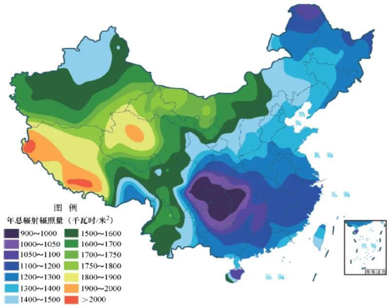 我國太陽能發(fā)電資源豐富,資源可開發(fā)潛力巨大,全部陸地面積接收的太陽能輻射能約為1.7萬億噸標準煤/年。依據(jù)太陽能輻照強度,我國所有地區(qū)均是資源可利用區(qū),資源分布總體呈現(xiàn)“高原大于平原、西部干燥區(qū)大于東部濕潤區(qū)”的特點。